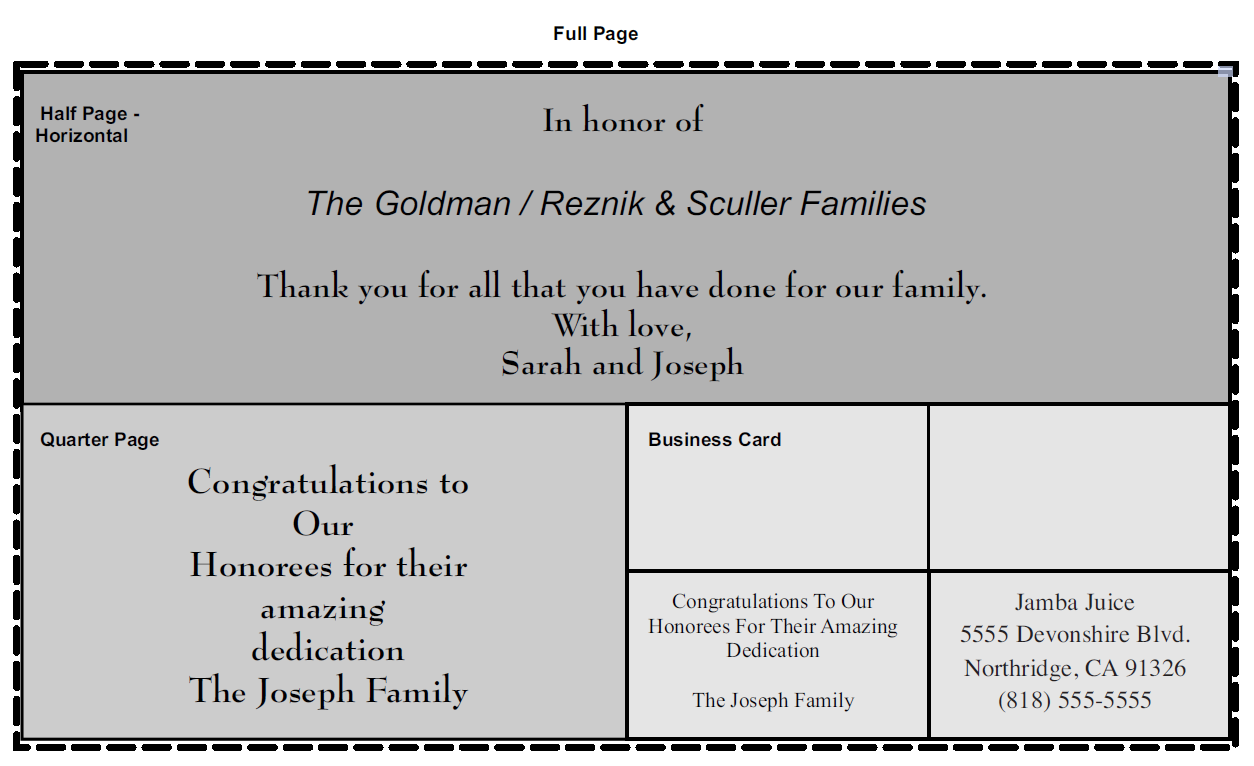 All camera-ready design in black and white or color, including business cards, must be submitted digitally in high resolution JPEG, PDF or PSD format to: Gala@TASnorthridge.org